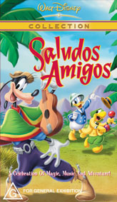 Saludos Amigos was first released in American theatres on 6 February 1943. With Europe in the throes of war during the 1940s, America established a 'good neighbour policy' with South America. The Latin American influence took America by storm and Disney, like many others, was inspired. Walt Disney charted a plane to visit several countries on the South American continent with some of his staff to produce a series of cartoons inspired by the sights and sounds of these nations. The result was called Saludos Amigos, a hybrid featuring four separate animated stories, each made up of live-action footage shot by Walt and his crew during the trip, and animated characters. Saludos Amigos stars Donald Duck, Joe Carioca and Goofy. It includes travel footage with Disney artists and features Donald Duck as the typical American tourist at Lake Taticaca. It also includes the story of a little aeroplane called Pedro who bravely negotiates the treacherous mountains to deliver mail from Chile to Mendoza. The following segment, El Gaucho Goofy, was inspired by the crew's visit to the Pampas region and features Goofy as he attempts to demonstrate the equipment used by a Gaucho. The final sequence takes place at the Carnival in Rio. Here a tropical bird called Joe Carioca takes Donald Duck on a tour of South America, with the aid of a paintbrush that fills in the background as they progress. |